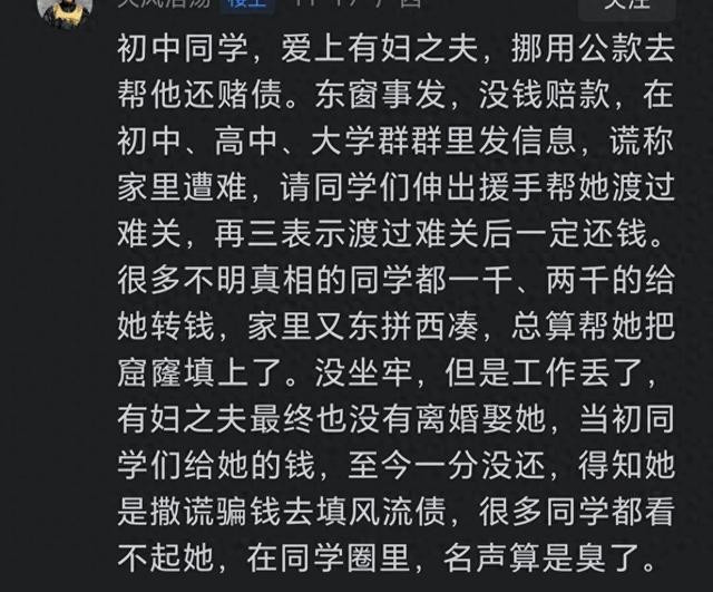 01.为了男人去挪用公款又得到了什么呢?不知是否后悔了,估计她的同学都后悔帮她了吧。